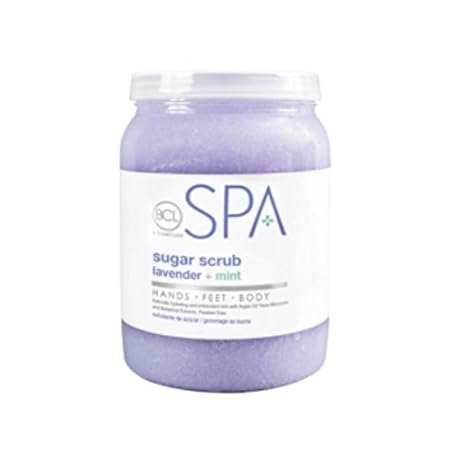 BCL Spa Lavender Sugar Scrub 16oz. This gentle and luxurious scrub suspends natural sugar in Certified Organic Oils to leave your skin soft and glowing. The sugar works to exfoliate dead cells from the skin while our blend of precious Argan Olive Jojoba and Spearmint oils leave you velvety soft and glowing.