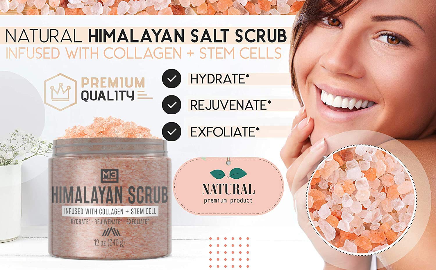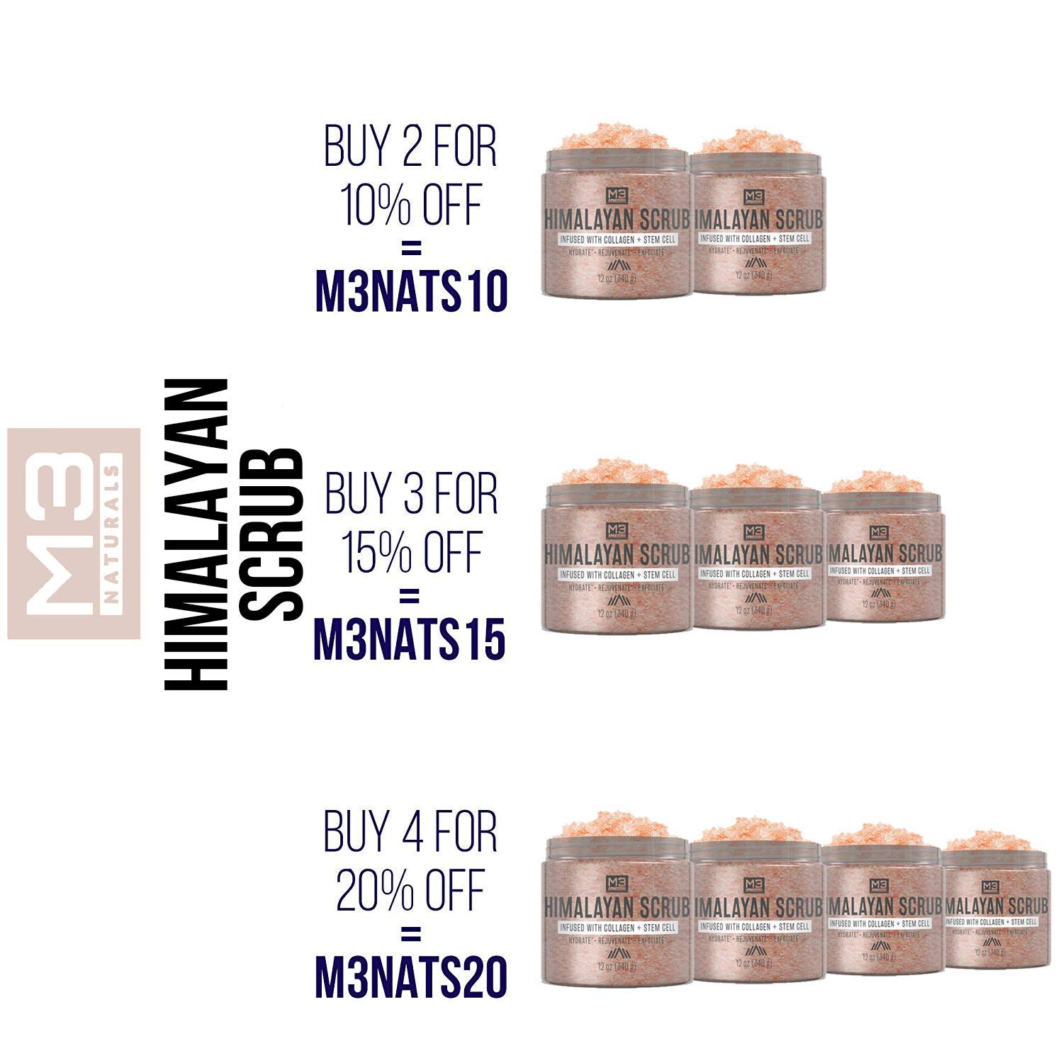 Infused with Collagen and Stem Cell our Himalayan salt will take your skin regimen to the next level providing a boost. 6192019 Best Himalayan salt scrub for the face M3 Naturals Himalayan Salt Infused with Collagen. M3 Naturals Arabica Coffee Scrub 4599.