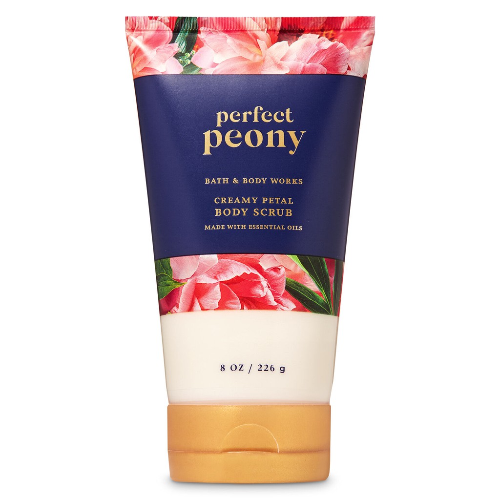 Best organic body scrub for sensitive skin. Body Works Creamy Petal Body Scrub. A beautiful bouquet of Peony Orange and Cherry Blossoms are blended with Vanilla Strawberry and Pineapple. Handful of fresh peony petals.