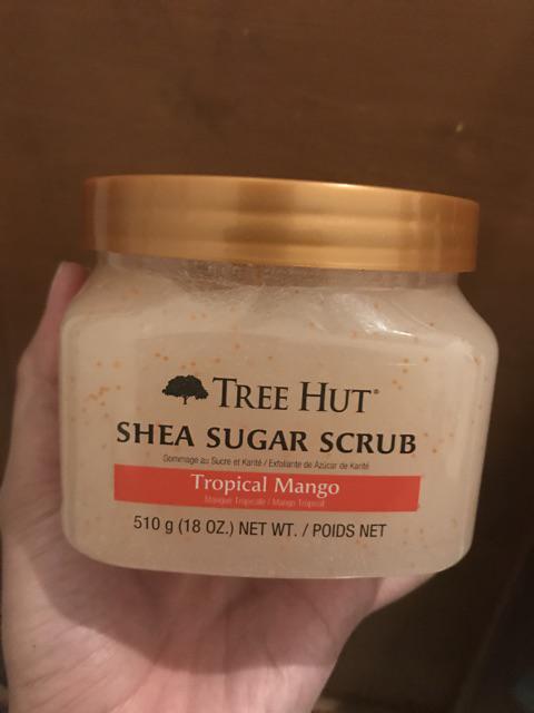 Experience intense exfoliation with Tree Huts Shea Sugar Body Scrub with the exotic scent of Tropical Mango. Tropical Mango Body Scrub. Gently exfoliate your skin with real sugar crystals by scrubbing away dead skin to reveal silky smooth skin.