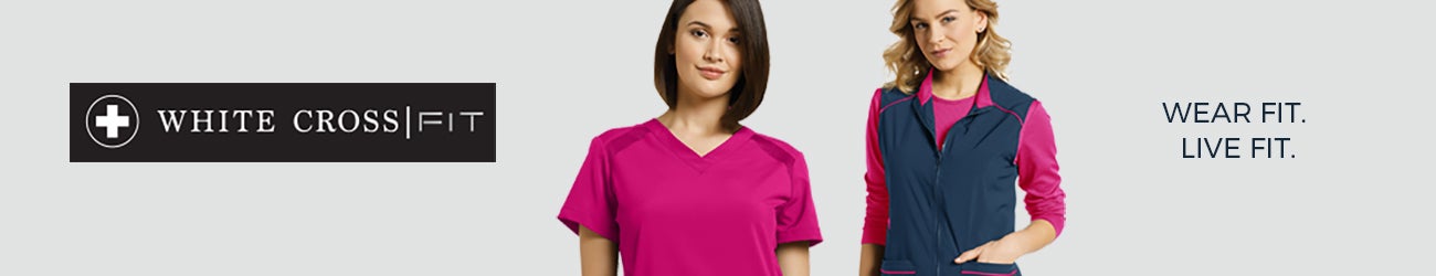 White Cross Womens Warm-Up Scrub Jacket - XS-XL. The White Cross Fit scrubs collection adds an athletic dimension to your workday. Whitecross FIT Womens V-Neck Pewter Scrub Top.